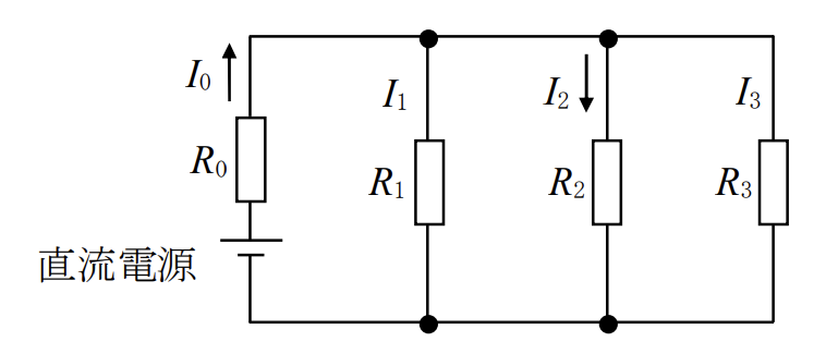 $$\begin{eqnarray} I_0&=&I_1+0.3+I_3=1.5 \end{eqnarray}$$また、並列接続の抵抗に加わる電圧は等しいので、以下も成り立ちます。
