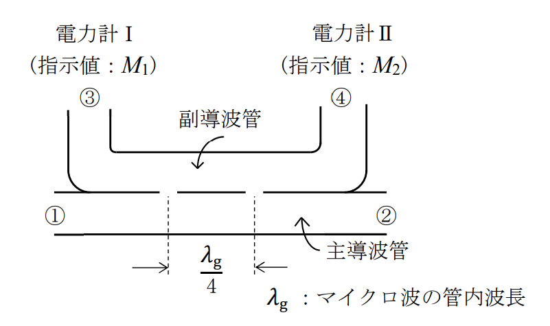 問題で与えられたような導波管の方向性結合器において、入力と出力の関係は下図のようになります。