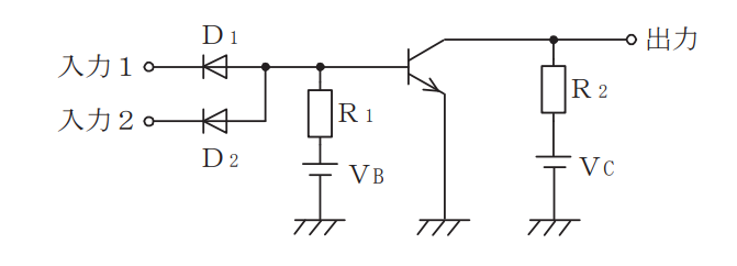 HOME > 伝送交換主任技術者 > 伝送交換主任技術者 線路主任技術者 電気通信主任技術者 電気通信主任技術者 令和7年第2回 電気通信システム問3 2026-02-24 2026-02-02 問題 図に示す論理回路を入出力とも正論理で使用するとき、この回路は( )回路として動作する。 AND NAND OR NOR XOR 解答 2 解説 結論、問題の回路図はNAND回路を示しています。 AND、NOTといった論理回路を実際の電子回路で作成するには、下記のような回路構成になります。 問題の回路図はAND回路とNOT回路の組み合わせとなっています。 Twitter Share Pocket Hatena LINE コピーする -伝送交換主任技術者, 線路主任技術者, 電気通信主任技術者